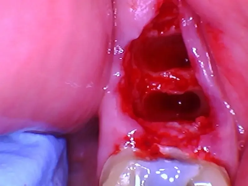 Here’s the risk of not grafting: As the bone heals, it collapses from the cheek side.