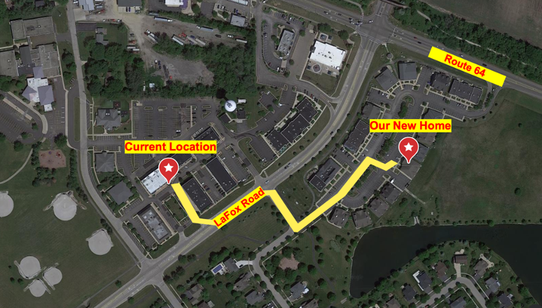 Google says the distance is only 300 yards away… We cant wait to see you in our new digs soon!